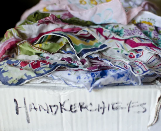 This old beat up box of handkerchiefs has been moving from home to home with me for years. There's quite a variety of different patterns and designs. Is it possible to make a cohesive design fit for a little lady from this box of handkerchiefs? How can I take this box of mixed patterns and colors and make something that is not hideous? Sometimes I really like to leave these questions to the back of my mind to sort out. Obsessing and over-thinking are my enemies here. I think about it a little bit actively, and then commit it to my subconscious and start on the next thing. I think this is where I address the possible concerns and issues I have, then I let them go. Somehow, everything gets worked out
