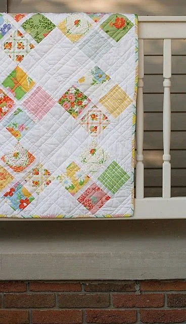 I chose this quilt from "Little Miss Shabby" because I like the feel (light & airy), because it's relatively simple in construction (so I can figure out how to make it), & because there's a lot going on with the fabric, but it still flows (my choice of materials should work).